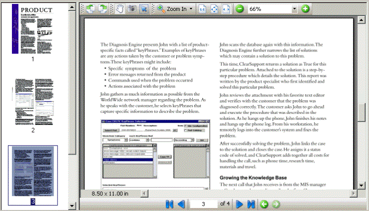 The left pane of the viewer lists thumbnail images of every page in the document. If there are multiple images, a scroll bar allows you to scroll down the individual thumbnail image.