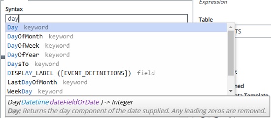 Enter the criteria required by the function, e.g. the table and field of your source data in the format [TABLE].[FIELD].
