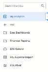 Click to open the Analytics Menu. The Analytics Menu allows you to open a folder, report, or dashboard at anytime while working in Analytics.