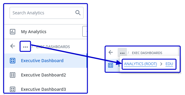 To return to previous folders, click the arrow or click the three dots to display links to previous folders and then click the folder that you want to return to.