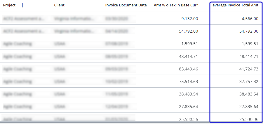 The following example results in an error because AVG does not accept another AVG or a dimension as a parameter::