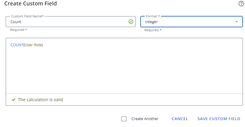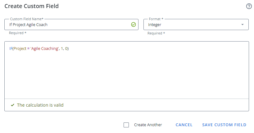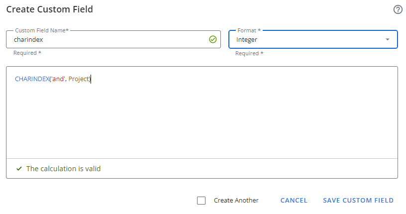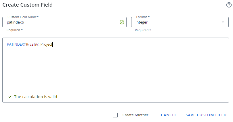 | $true | Any expression that is valid as a Custom Field expression | |||||||||||||||||||||