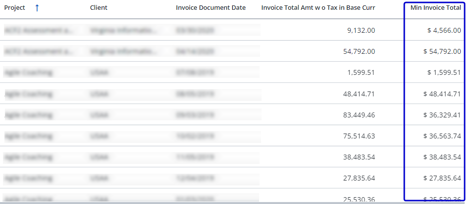 Returns the minimum value of a $field, aggregated by the dimensions on the widget. MIN returns: