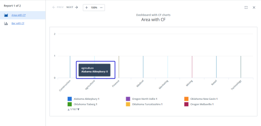 Widget Pagination: Displays the previous or next widget in the report list. You can also zoom into or out of the report or graph/chart.
