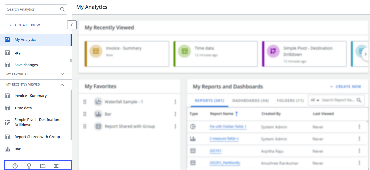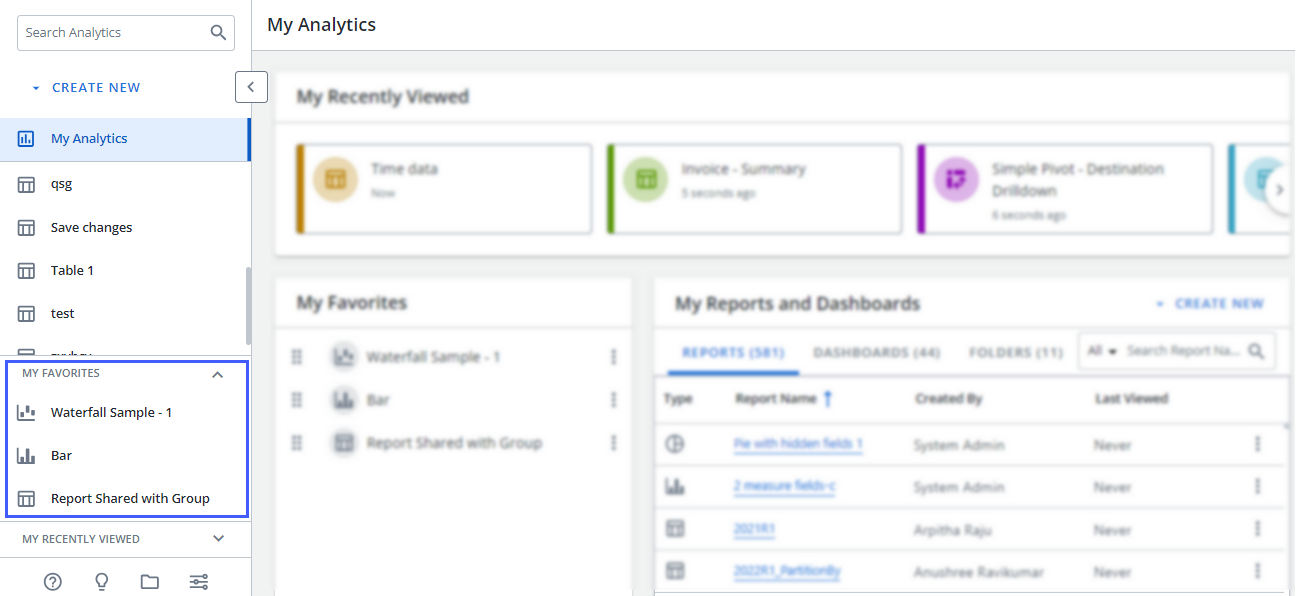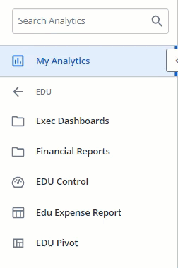 The Analytics Menu allows you to open a folder, report, or dashboard at anytime while working in Analytics.