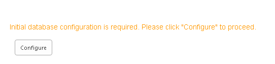 - After the database has been successfully created, or connected, the page refreshes and you are prompted to configure the database if required