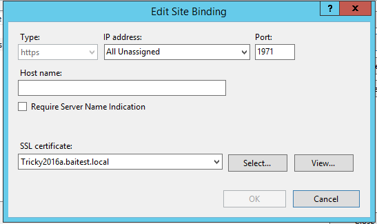 - Edit the current binding or add a new binding configured for HTTPS: