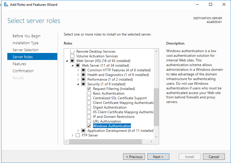 - The server where AutoClassifier is installed must have the Windows Authentication feature/role enabled.