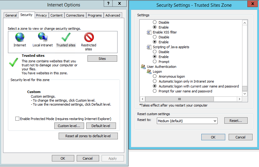 - Select "Automatic logon with current username and password."