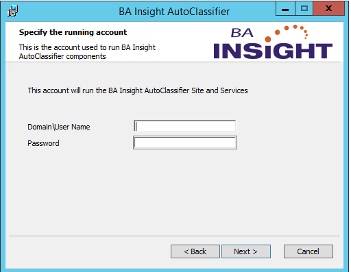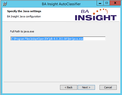 - Double-click BA Insight AutoClassifier<version>.msi to run the installer.