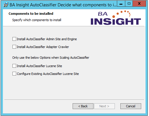 - Configure Existing AutoClassifier Lucene Site: When scaling AutoClassifier the installer can point to an existing Lucene Site