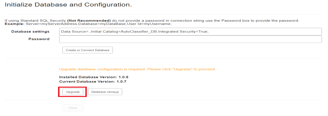 When accessing the AutoClassifier Engine a check is performed to ensure the installed database is up-to-date.