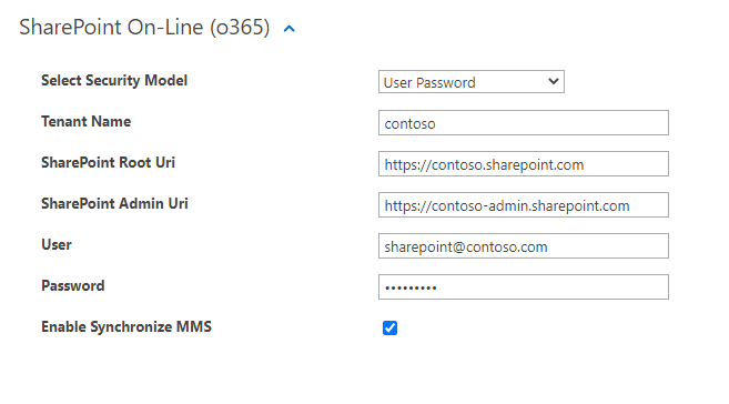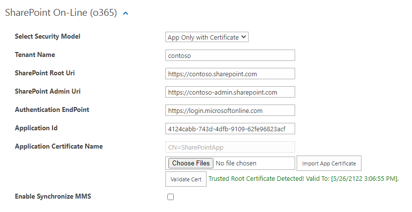 - SharePoint Root Uri: Enter the tenant Root Uri