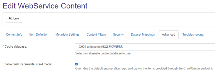 When "push incremental crawl mode" is enabled for a content source, then the default logic for incremental crawl is completely replaced and Connectivity Hub re-crawls only the items pushed via the CrawlQueue API endpoint.