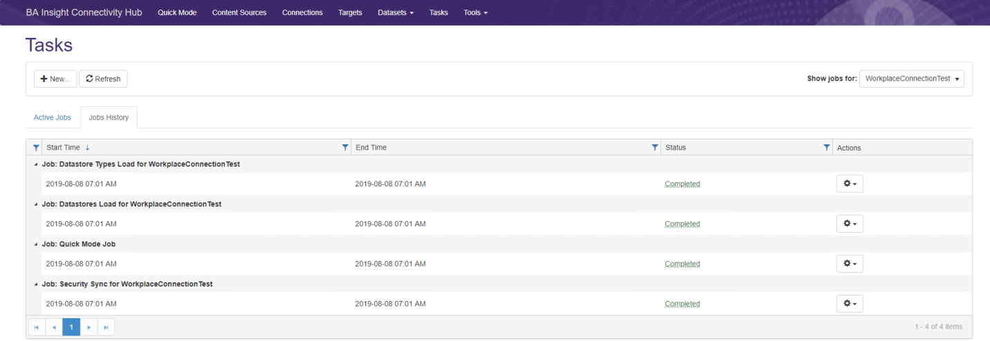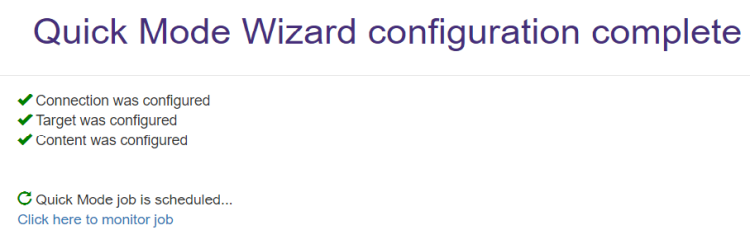 - When configuration is done, a Quick mode job starts that runs all the Connection Jobs that are supported by the connector: