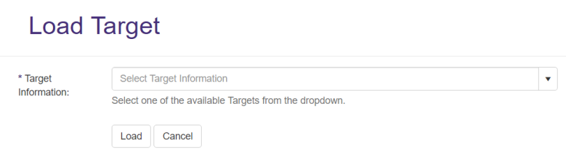 - If a new target option is selected, you are directed to the "Load Target" screen.