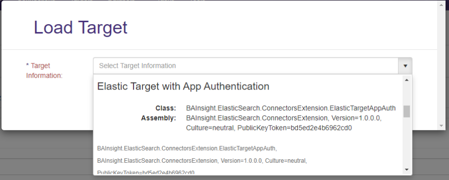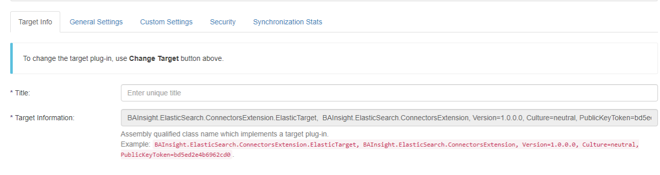 - Enter BAInsight.ElasticSearch.ConnectorsExtension.ElasticTarget