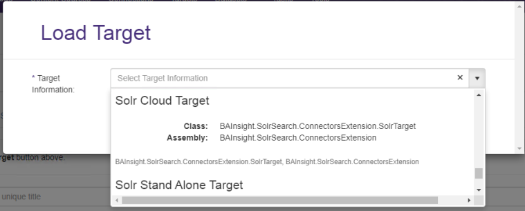 - Select Solr as the target from the drop-down menu. Scroll down if you do not see your target.
