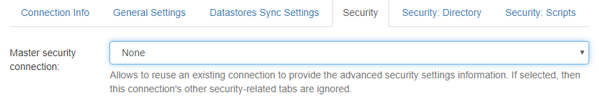 - Master security connection: If you want to reuse the security information from another Connector, specify the security information of another connection so that you do not have to run a security sync operation for this connection.