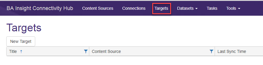Go to "Targets" tab in the Connectivity Hub header navigation.