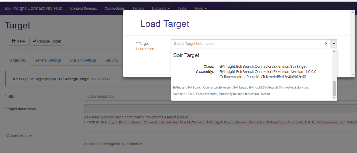 - The Load Target page appears. Select Solr Target from the drop-down list.