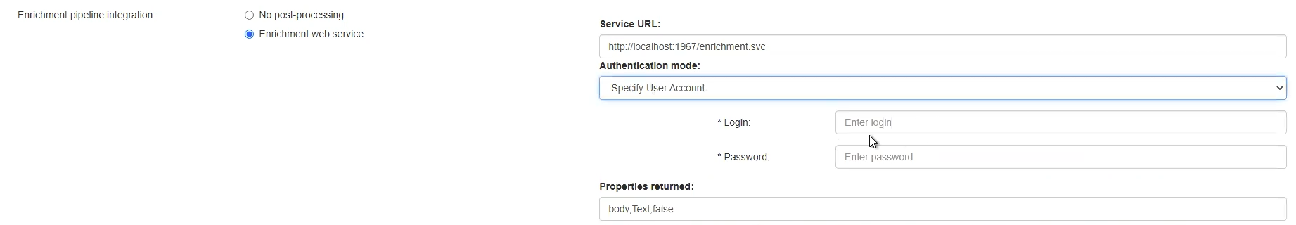 - If you use Content Enrichment and specify a user account for authentication: