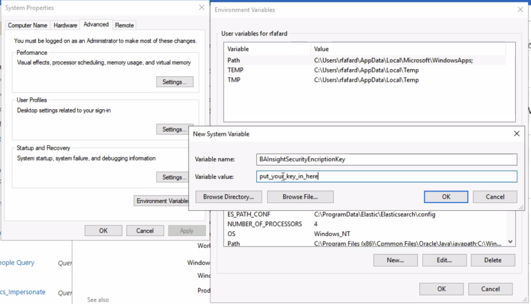 If you want to have multiple user accounts running multiple BA Insight products that use this encryption mechanism, you can either set up the environment variables for each of the users, or set up the system environment variables.