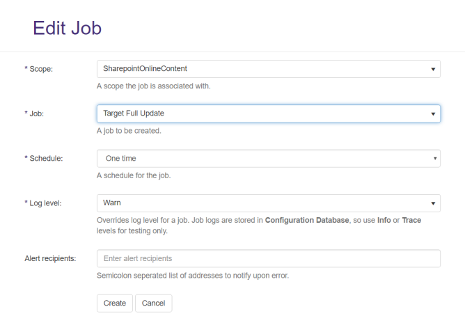 - Scheduled: Specify a simplified/advanced schedule for your target job.