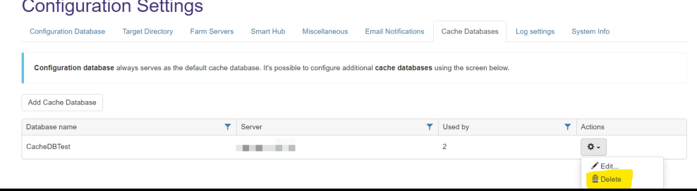 The configuration database serves as the default cache database.