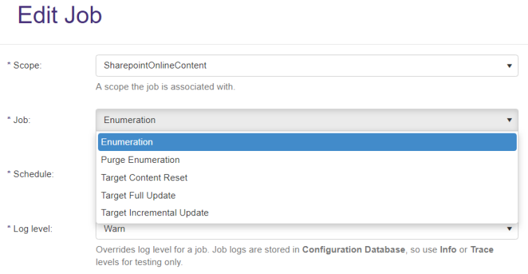 - Log level creates logs containing classes of job issues, such as Warnings or Cautions.