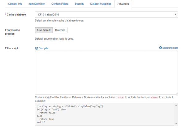 Select a content source and choose which items are excluded from the crawl when you choose to apply filtering using a VB.NET script.