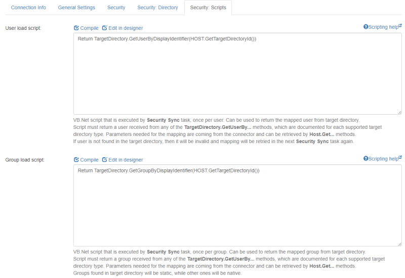 - For additional filtering, write VB.Net scripts to filter users and groups from the source system.