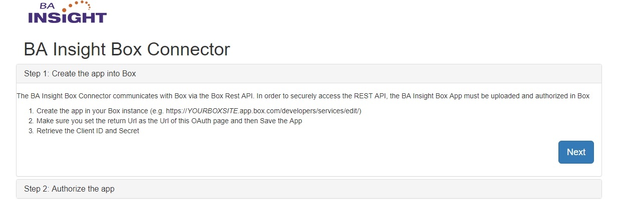 - The Box connector uses oAuth to connect to an application that you create and configure in the Box application itself.