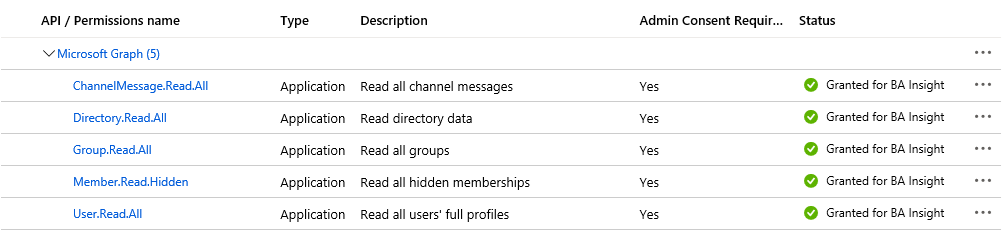 - Verify that the list of the application permissions looks like on the screenshot below: