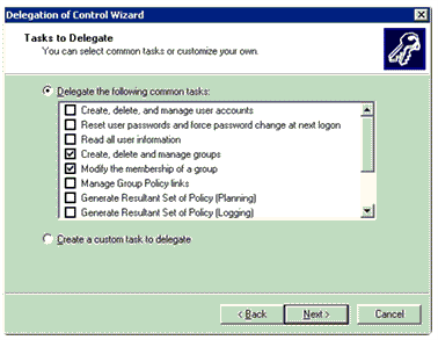 Using the Delegation of Control Wizard in Active Directory to establish the following settings.