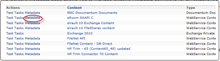 - Under Actions click the Metadata link for the content source.