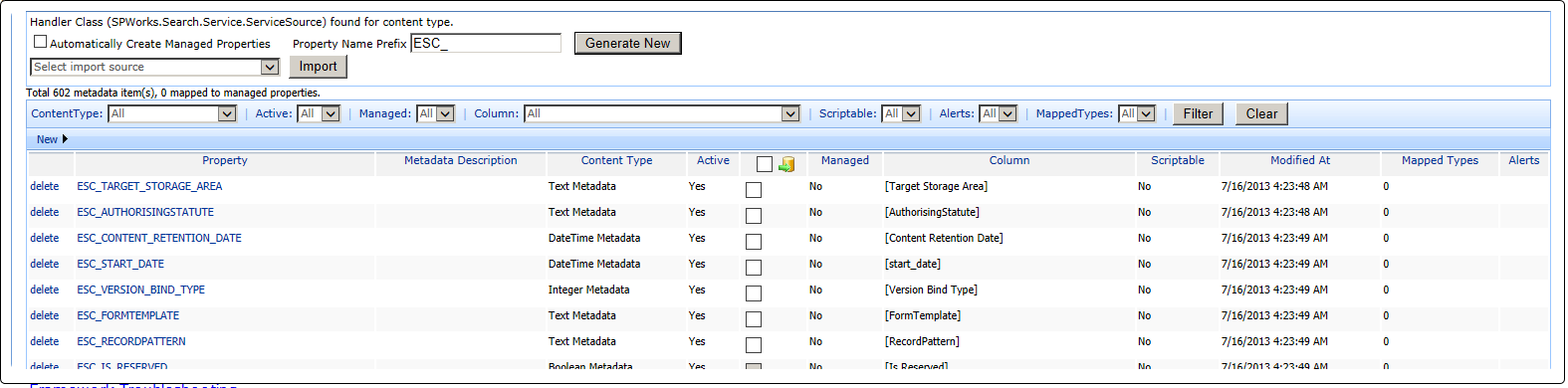 - View whether a matching SharePoint Search Managed Property exists (Applicable to SharePoint Search instances only.)