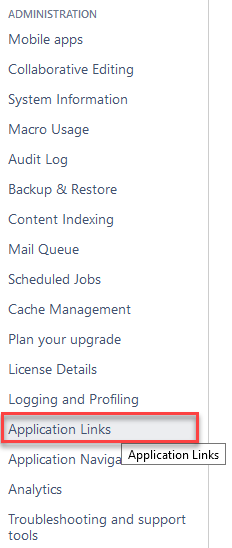 - Select Application Links from the left-side navigation under ADMINISTRATION.