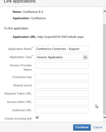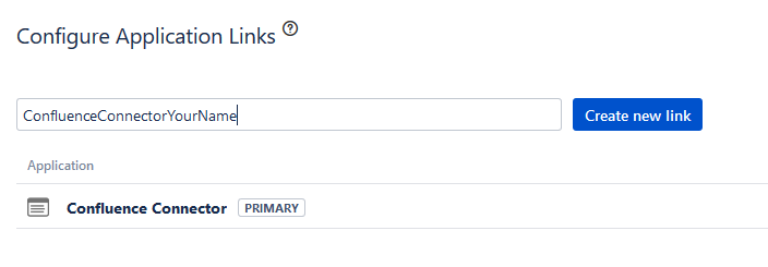 - Enter an Application Name that Confluence administrators will recognize as the connector application link. This can be the same name as your Application link, entered above.