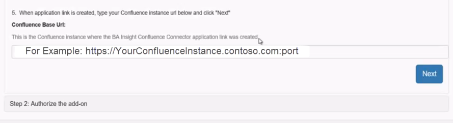 - Continue with the instructions provided in Confluence, which includes entering your Confluence base URL, including port.