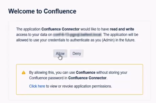 Follow the on-screen prompts to log in using the credentials of the crawling user account (see Confluence Connector Prerequisites).