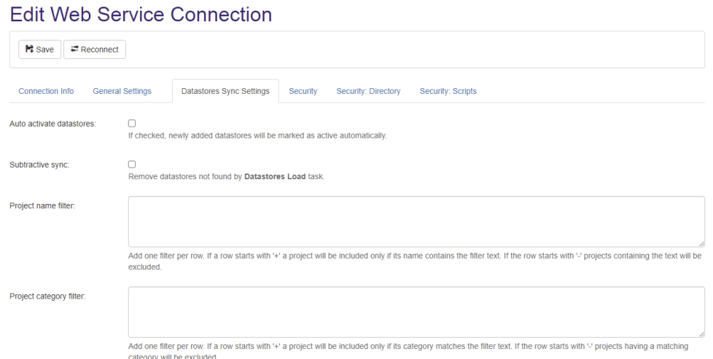 - Remove datastores not found by by the connector Datastores Load task.