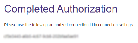 - When the authorization process is complete, an authorized connection id is displayed on the screen.