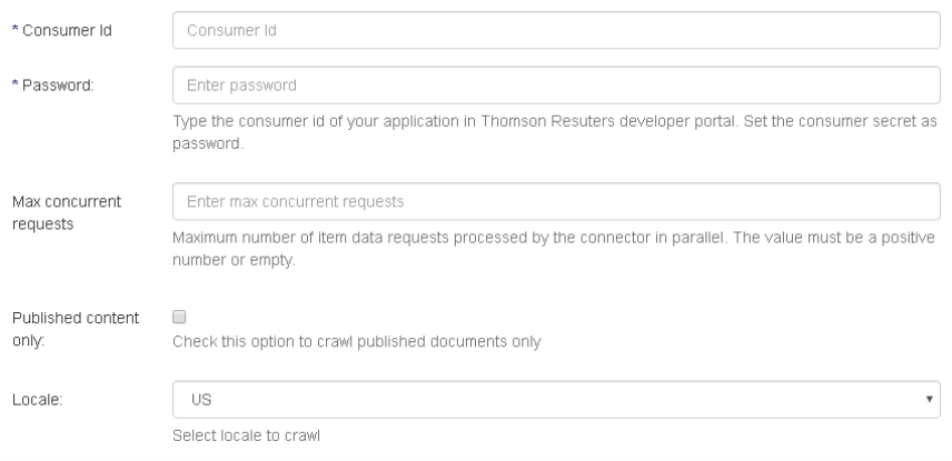 Use the following steps and notes to complete your content source definition with Practical Law-specific settings: