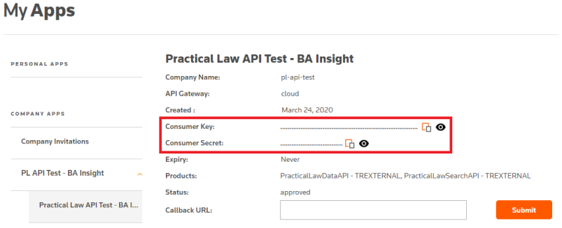- "Consumer Secret" from the Thomson Reuters Developer Portal (requires login).