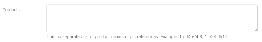 Products: Specify a comma separate list of products to crawl in the form of product names or plc references.