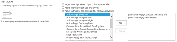 and select Site Settings> Look and Feel > Page layouts and site templates. Go to Page Layouts and add (Welcome Page) Compact Search Results to the list on the right. Scroll down the page and click OK.