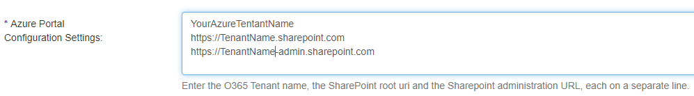 - Azure Portal Configuration Settings. Refer to the graphic below for sample values.