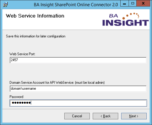 - Click Next to proceed, until you reach the "Web Service Information" screen, shown below.