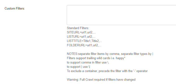 - If any changes are made to this field, a full crawl is required to properly refresh the index.